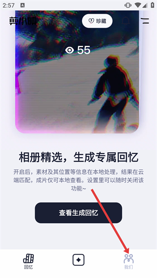 1、在剪小映的【回憶】頁(yè)面,點(diǎn)擊底部的【我們】選項(xiàng),可進(jìn)入對(duì)應(yīng)功能頁(yè)面。