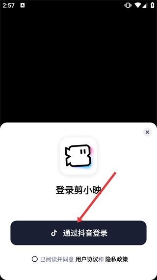 3、在剪小映的登錄彈窗中,選擇【通過抖音登錄】選項(xiàng),可進(jìn)入抖音賬號(hào)的登錄授權(quán)流程。
