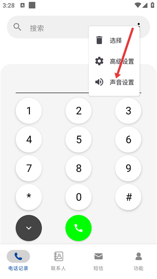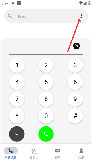 2、在【電話記錄】頁面點擊搜索欄右側的三點圖標,可展開操作菜單。