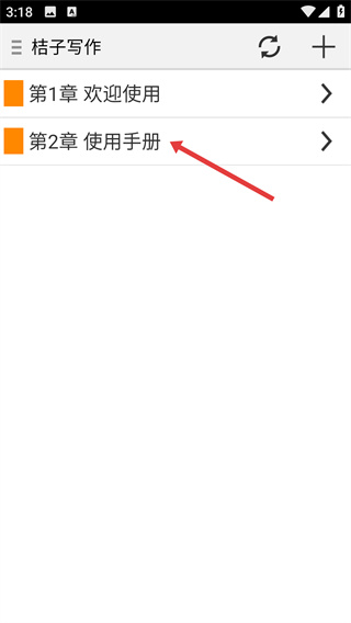 1、在【桔子寫作】界面中,可查看個人所有的文本,點擊對應(yīng)文本項即可進(jìn)入對應(yīng)內(nèi)容頁面。