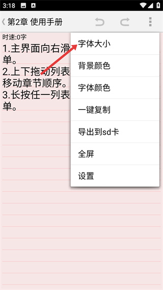 3、在多功能菜單選項中,點擊【字體大小】功能,支持字體大小的調(diào)整。