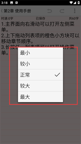 4、在調(diào)出的菜單中選擇【字體大小】,可切換【最小】【較小】【正?!康冗x項,按需調(diào)整閱讀顯示效果,優(yōu)化使用體驗。