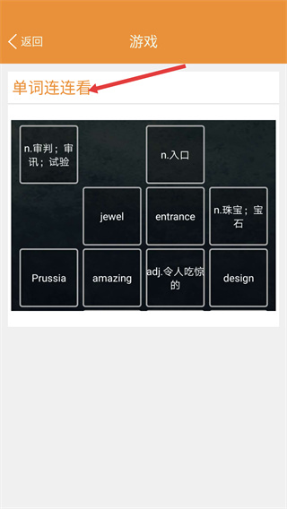 2、在游戲選擇界面中,選擇【單詞連連看】游戲類型,該游戲通過配對(duì)單詞與釋義的方式,以趣味形式鞏固單詞知識(shí)。