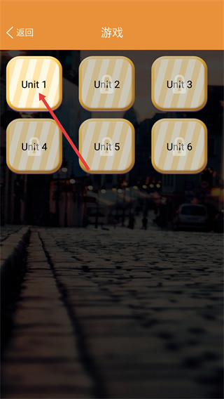 3、在單元選擇頁(yè)面,點(diǎn)擊已解鎖的單元,進(jìn)入對(duì)應(yīng)單元的單詞連連看游戲關(guān)卡。