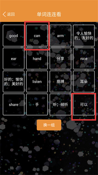 4、在單詞連連看游戲界面,將單詞與對(duì)應(yīng)的中文釋義進(jìn)行配對(duì)連接,完成單詞與釋義的匹配練習(xí),提升單詞掌握程度。