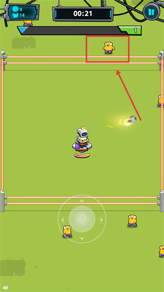 3、對戰(zhàn)場景中攻擊黃色敵方單位,消滅后可積累資源,需靈活躲避敵方攻擊并精準(zhǔn)輸出。