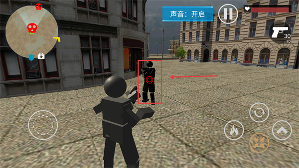 4、遇到敵方單位時,鎖定目標后使用武器攻擊,同時留意自身血量,及時規(guī)避傷害保障生存。